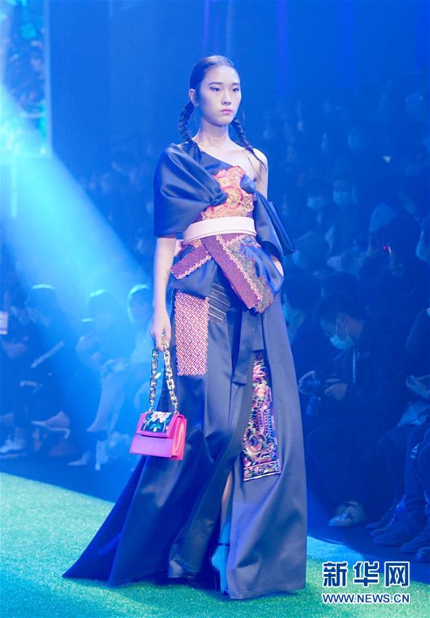 10月25日,模特在天才妈妈×东乡绣娘·张肇达公益时装秀上展示。 当日,“天才妈妈×东乡绣娘”公益品牌计划发布会暨天才妈妈×东乡绣娘·张肇达公益时装秀在北京举办。时装秀上,60套富有东乡族刺绣设计元素的时装为观众们献上一场视觉盛宴。 新华社记者 陈建力 摄