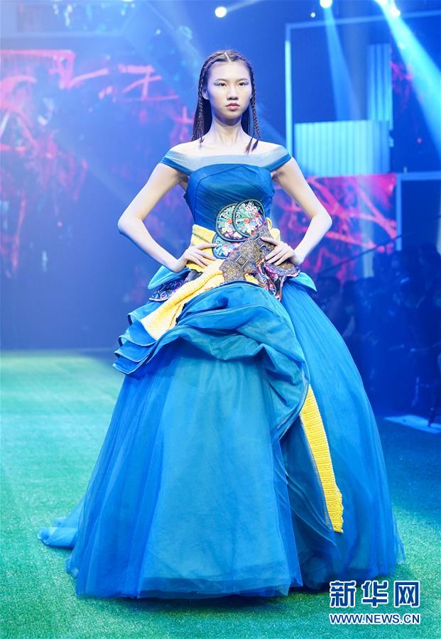 10月25日,模特在天才妈妈×东乡绣娘·张肇达公益时装秀上展示。 当日,“天才妈妈×东乡绣娘”公益品牌计划发布会暨天才妈妈×东乡绣娘·张肇达公益时装秀在北京举办。时装秀上,60套富有东乡族刺绣设计元素的时装为观众们献上一场视觉盛宴。 新华社记者 陈建力 摄