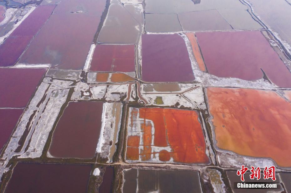 10月25日,山西运城,无人机航拍秋日盐湖,色彩绚丽美景独特。 中新社记者 武俊杰 摄