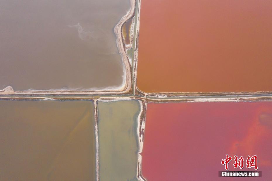 10月25日,山西运城,无人机航拍秋日盐湖,色彩绚丽美景独特。 中新社记者 武俊杰 摄