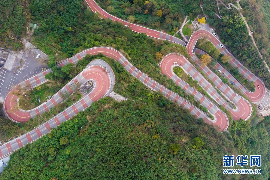这是10月28日在湖南省吉首市矮寨镇拍摄的盘山公路(无人机照片)。新华社记者 陈思汗 摄