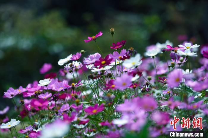 10月28日,在广西龙胜各族自治县泗水乡周家村布尼花海梯田拍摄的格桑花。 吴生斌 摄