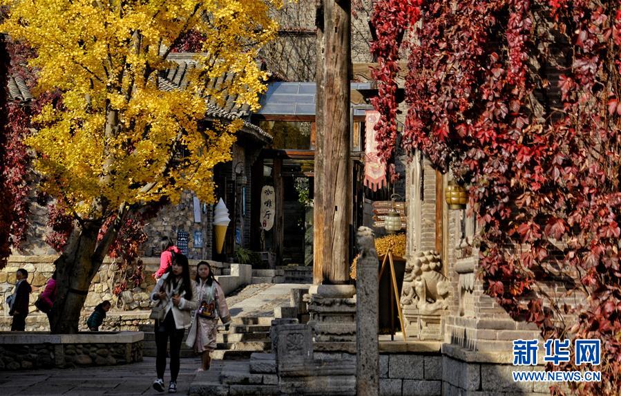 10月29日,游人在古北水镇观赏秋色。 秋意渐浓,北京市密云区司马台镇的古北水镇迎来大批游客。 新华社记者 李欣 摄