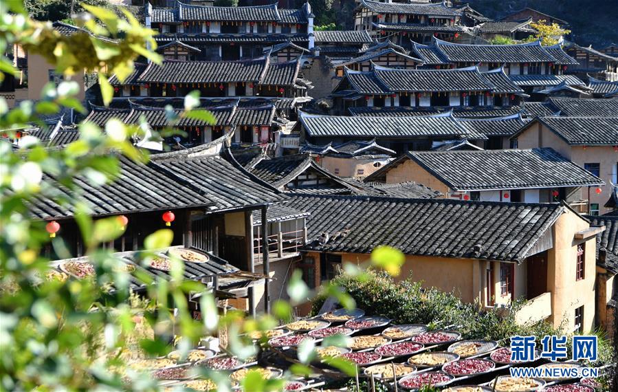 这是11月1日拍摄的桂峰村村貌。 深秋时节,位于福建省三明市尤溪县洋中镇的桂峰村,古民居与晒匾里五彩缤纷的农作物,构成五彩斑斓的调色板,展现秋收风情。 新华社记者魏培全摄