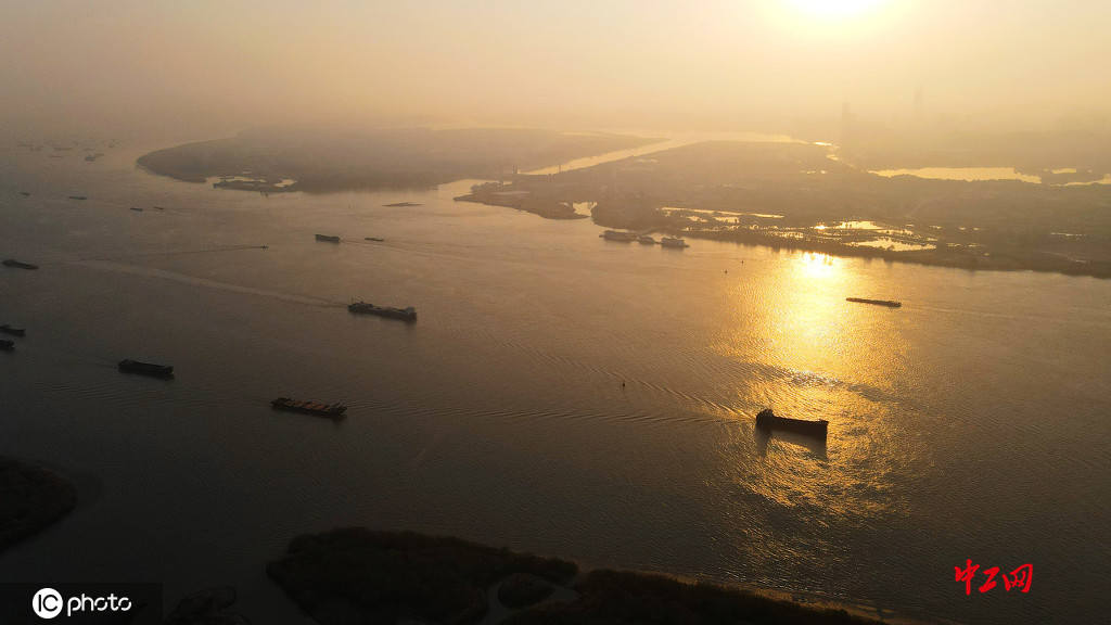 2020年11月10日,初冬时节,江苏扬州瓜洲省级湿地公园内呈现出美丽的“五彩秋色图”,常绿的树木、白色的芦花、黄色的草丛等在蓝天白云映衬下,构成一幅幅美丽的生态画卷。(孟德龙/IC photo)