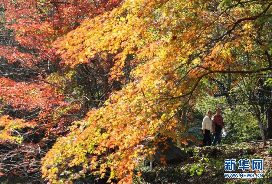 11月14日,游客在南京市栖霞山景区观赏红叶。新华社发(李文宝 摄)