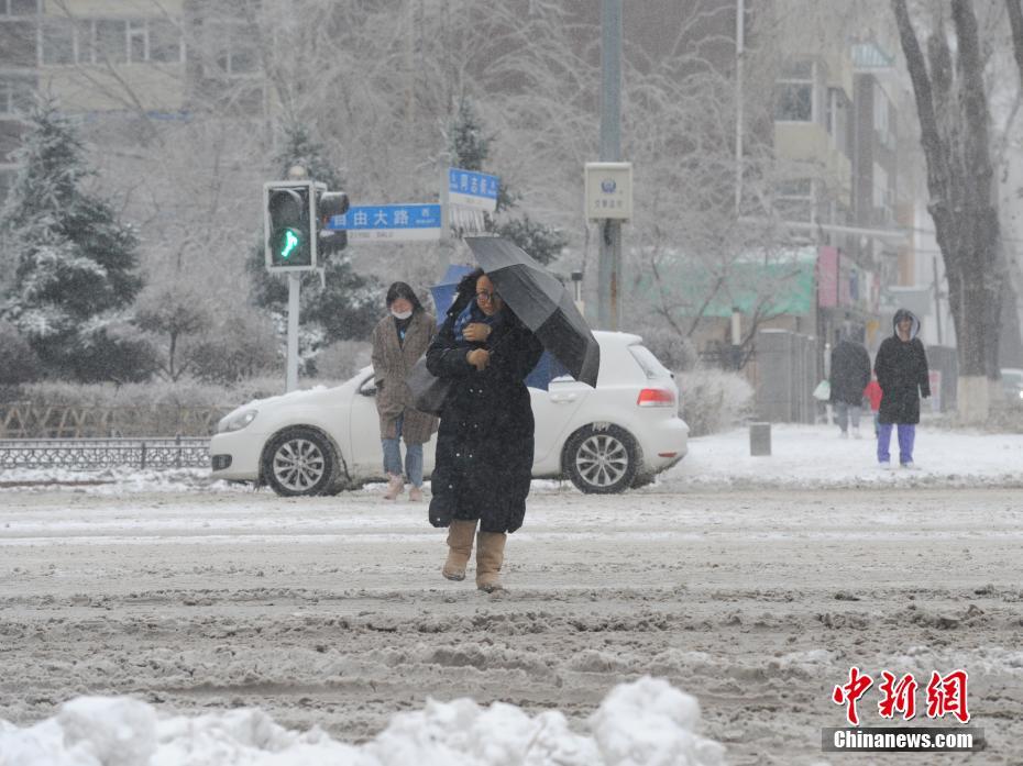 11月19日,吉林长春,市民冒雪出行。当日,吉林长春遭遇暴雪天气。中新社记者 刘栋 摄