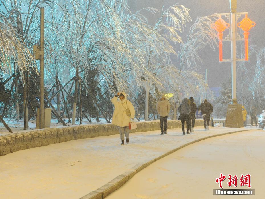 11月19日,吉林长春,市民冒雪出行。当日,吉林长春遭遇暴雪天气。中新社记者 刘栋 摄