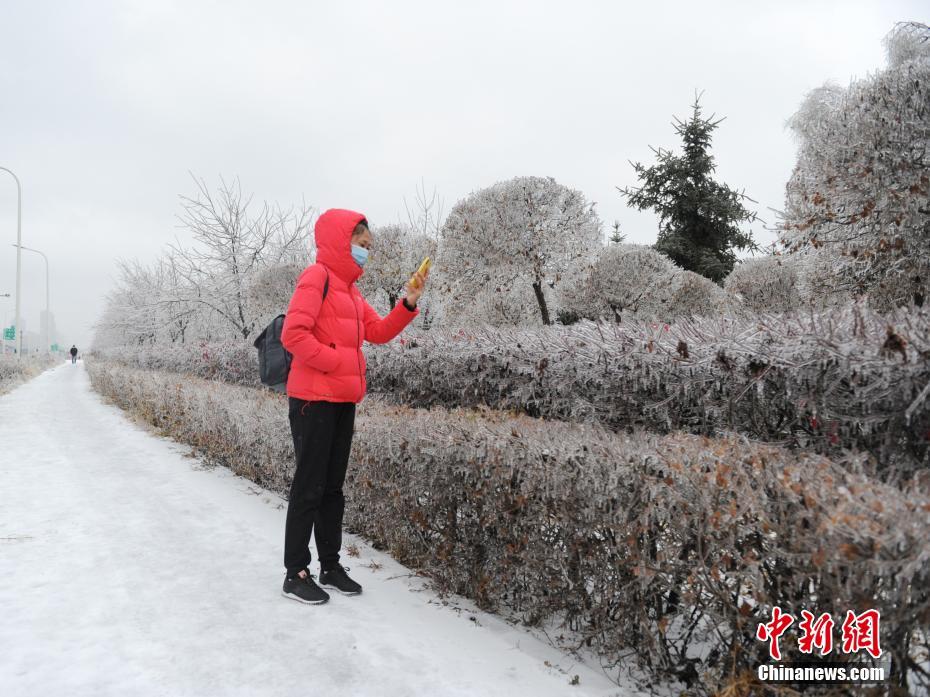 11月19日,吉林省长春市遭遇罕见冻雨天气,整座城市披上“冰装”。中新社记者 刘栋 摄