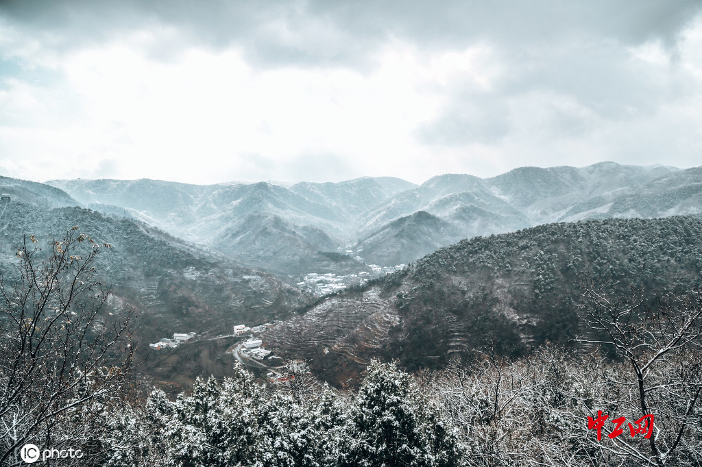 2020年11月22日,山东济南,南部山区七星台风景区迎来今冬第一场降雪,大山被银装素裹,吸引不少市民登上山顶与美景合影留念。(疯狂的小石头/IC photo)