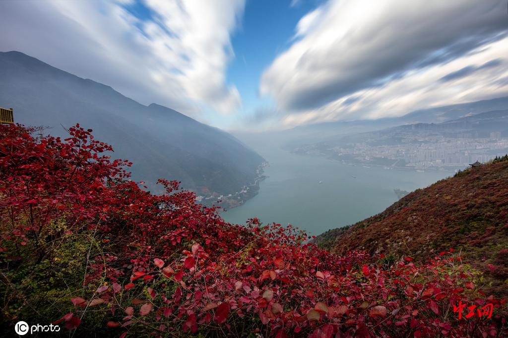 2020年11月26日,重庆巫山,游重庆高峡平湖,享漫山红叶层林尽染的浪漫。深秋时节的巫山,色彩弥漫开来,漫天的轻雾如纱般缠绕,朦胧轻盈,铺满山间峡谷,从水到林,层层染染,渲染成色,迎来最美红叶季。这里奇峰多姿山水相映、风光旖旎、水流平缓、清澈见底,两岸悬崖对峙,壁立万仞,河道狭窄,天开一线,像一处玲珑奇巧的峡谷盆景,有挡不住的诱惑。每年11月底12月初,是巫山三峡红叶漫山红时,正是观赏巫山红叶云海的黄金时期。云海飘在如烟如雪的白云与千峰万壑之间,波澜起伏、浩瀚似海,人亦有了轻飘飘飞仙般的感觉。(周智勇/IC photo)