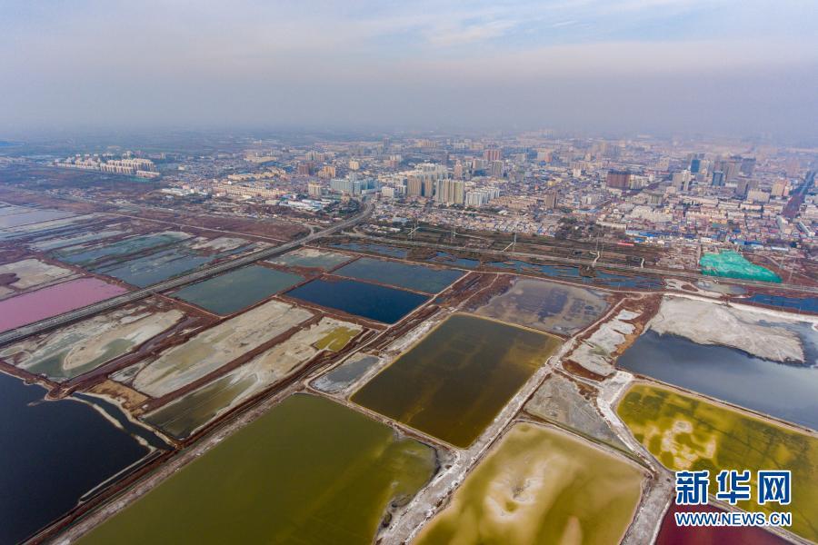 这是12月3日拍摄的运城盐湖一角(无人机照片)。冬日里,从空中俯瞰山西运城盐湖,色彩斑斓,风景如画。 新华社记者 杨晨光摄
