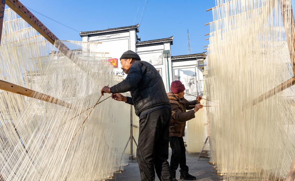 浙江浦江:传统手工晒面如帘成景