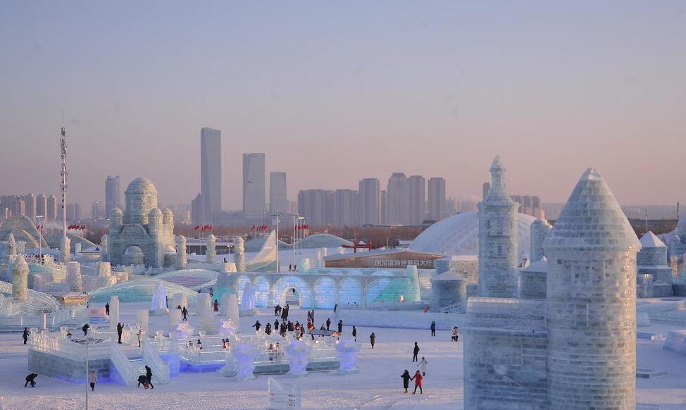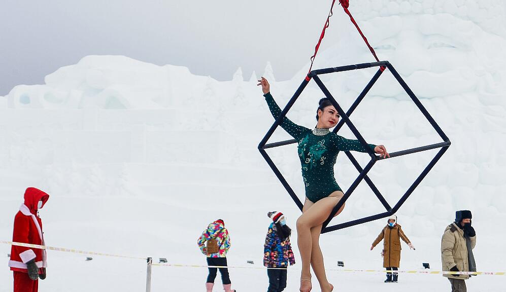 黑龙江漠河钢管舞极寒挑战赛转场圣诞村