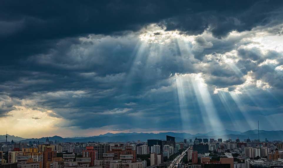 北京:“光柱”雨后现身 宛如科幻大片
