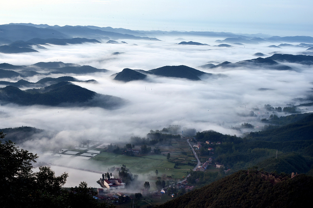湖北:龙凤观寨云海翻涌 宛如水墨画卷