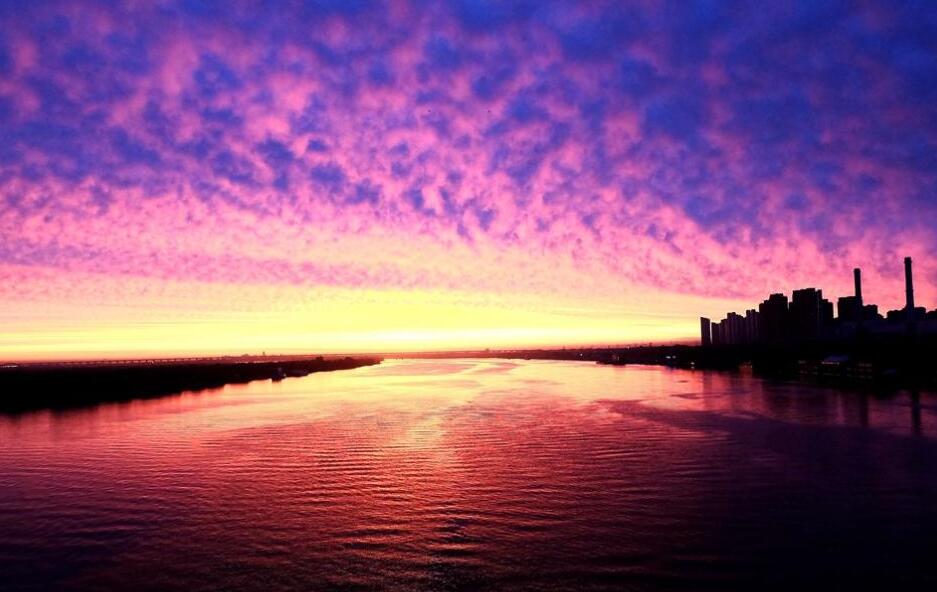 哈尔滨松花江朝霞如火如荼蔚为壮观