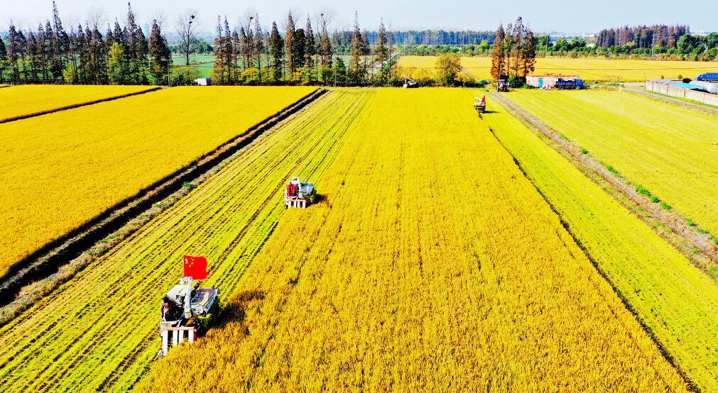 满目金黄 江苏泰州农场忙收割