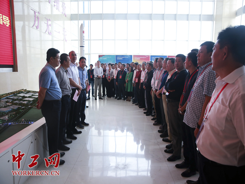 下午,劳模们前往天津航天长征火箭制造有限公司参观该公司研制、生产的长征五号大火箭。长征五号大火箭它的芯级直径达5米,助推器直径达3.35米,高约57米,在执行同一高度的轨道任务时,如果现役火箭需要3级,那么长五火箭只用2级即可。