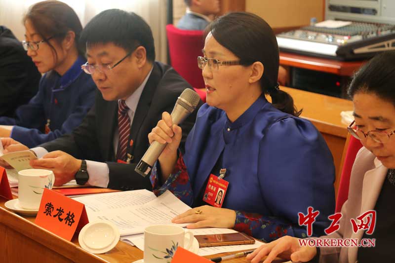 内蒙古代表团索龙格正在发言。 中工网记者 姚星摄