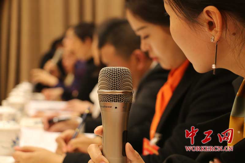 四川团许小琴代表正在等待上一位讨论的代表总结,争分夺秒,让更多的代表发言。中工网记者 姚星摄