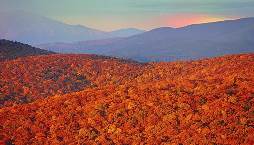 “漫山红遍,层林尽染”的黄栌树叶红得像火焰一般,霜后呈深紫红色。这些黄栌树是清代乾隆年间栽植的,经过200多年来的发展,逐渐形成拥有94000株的黄栌树林区。