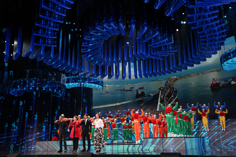 图为屠洪刚、云飞、褚海辰、柏文四位歌手和舞蹈演员们现场录制节目《为你放歌》。(中工网记者 于浩海 摄)