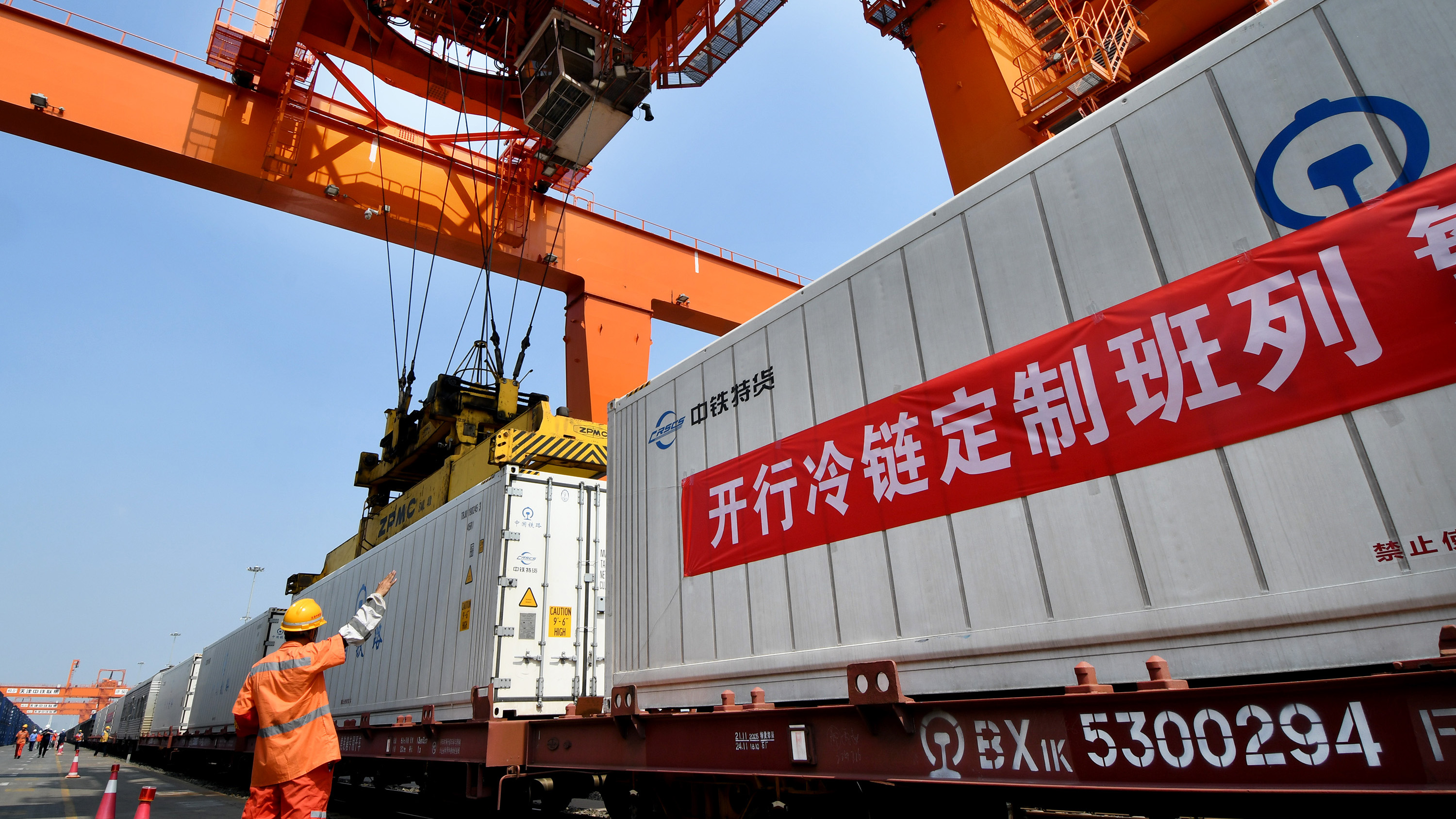自中国铁路北京局集团有限公司消息,7月16日10时30分,编有8辆冷藏集装箱46112次货物列车,满载208吨肉类、蔬菜从中国铁路北京局集团有限公司京铁物流中心天津集装箱中心站发出,驶向成都市城厢火车站。这是天津港区开出的首趟整列冷藏集装箱货物铁路班列。本次冷链运输采用插电式冷藏箱,可控温度范围在-26℃——26℃,由1台发电车为8台冷藏集装箱不间断供电。天津集装箱中心站对冷链物流市场进行了深入调研,针对客户需求,目前计划每月开行10列,160个冷藏集装箱;下一阶段将达到每月开行15列,240个冷藏集装箱。 通讯员 岳阳 摄影 杨宝森
