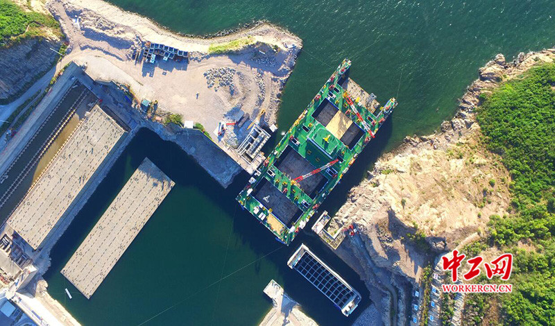 7月29日上午9点30分,经过近12个小时浮运,E2管节历经7次航道切换,较原计划提前6小时抵达基槽。在DP自动循迹航行模式下,一体船完成180度转向,抵达安装位置。经系泊绞移、沉放、拉合、水力压接等工序后,30日凌晨2点,E1和E2两个管节实现精准对接。