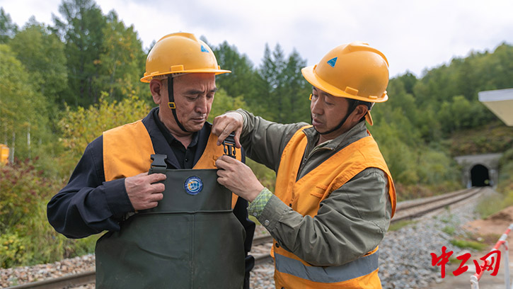 9月1日,高庆祥和工友们身穿棉裤和水叉,头戴头灯,钻进地下5米深的排水沟中进行清淤作业。高庆祥说:“9月末这里就要上冻了,我们要提前做好水沟清淤和井口防寒这些准备工作,确保隧道安全过冬。”(摄影:芦男)