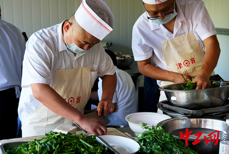 9月8日,铁路天津客运段职工食堂厨师对种养殖基地自产的蔬菜进行食材配餐操作。(摄影:杨宝森)