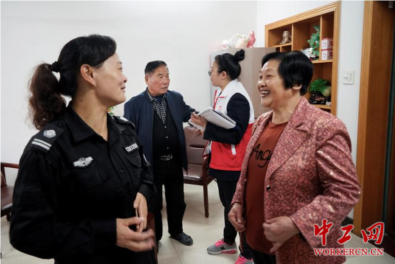 浙江省诸暨市暨阳街道凤凰社区积极探索开放式小区治理模式,创新建立了由50多名退休干部、党员、楼群骨干、管家民警、社区网格员等组成的“小区睦邻自治会”,不定期开展上门入户走访活动,了解民情民意,深化“枫桥经验”,解决居民困难,营造安定和谐的社区居住环境。图示为社区网格员、管家民警入户走访居民。(杨迪尔 陈 军 郭梦霞 摄)