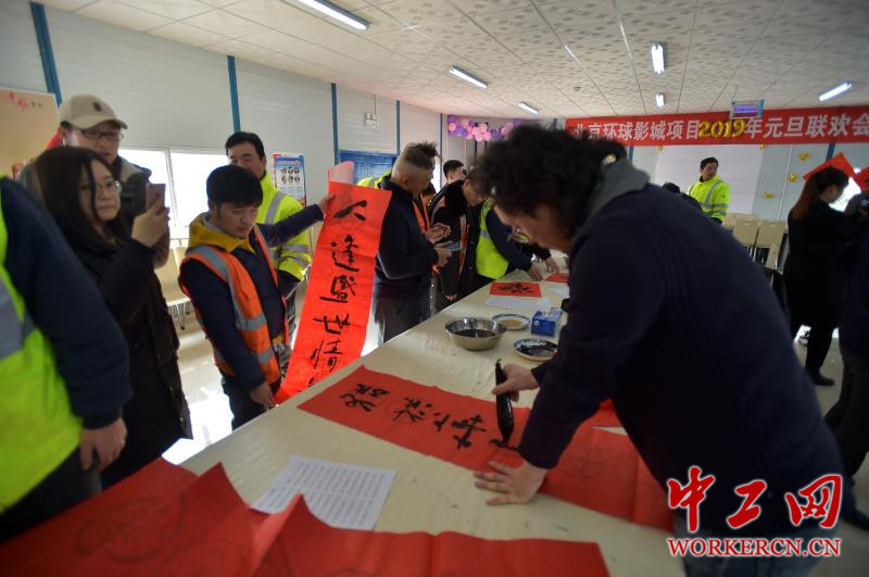 1月16日,由北京市总工会主办的“书画名家为建筑业农民工送春联”活动走进中建二局北京环球影城项目。来自中国书协、北京书协、北京职工书画协会的张铁京、田永庆、连双存和赵冠等多位书画名家现场挥毫泼墨,一对对饱含祝福的春联,一张张力透纸背的“福”字,为一线职工展示了一场中华传统文化盛宴。翰墨香、红对联、喜庆福……现场浓浓的年味,让辛勤奋战的职工们提前感受到新年的气息。