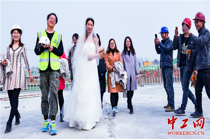 建筑女工工地走秀庆“三八”