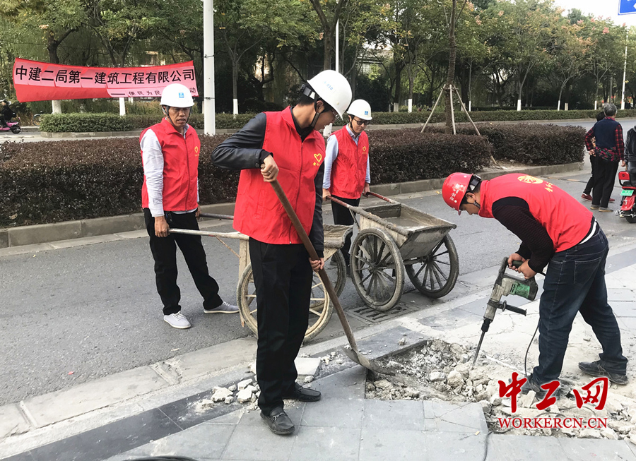 金和社区某些路段因人流车辆大,使用频繁,多处地面出现破损现象,附近居民出行时经常会崴到脚,严重影响居民出行,也大大降低了小区环境的美观度。针对此事,项目管理人员在充分征求辖区居民及无锡市广益街道金和社区负责人的意见后,积极与相关部门申请、协调,到现场实地勘察,商量修补对策,最终成功修复了两处破损道路。活动中,项目员工都奋勇当前,先使用电钻破除坏损道路砖块,再用人力车从项目推来混凝土余料重新浇筑路面,大家都忙的满头大汗而又其乐融融,很快就把破损道路处理完毕,解决了附近居民的“心病”。(王文涛)
