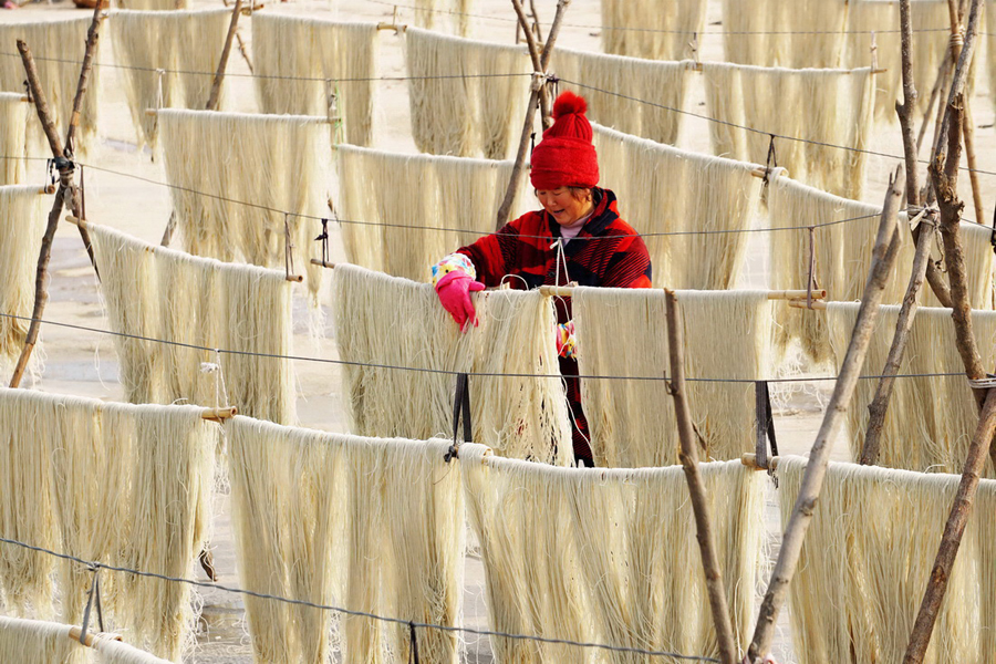 一到冬季,湖北郧阳手工红薯粉条成了市场俏销产品。今年,郧阳20个乡镇(场)共种植红薯15万亩;长坪村5组村民赵久胜一家,用15天时间,完成10000多斤手工红薯粉条的漏制,今年又将过个好大年。眼下,长坪村、蔡家岭村、二道坡村等周边500多农户正在忙着用传统手工艺,加工红薯粉条。“郧阳红薯粉条”已是当地地理标志产品。(记者邹明强 通讯员周家山 罗静)