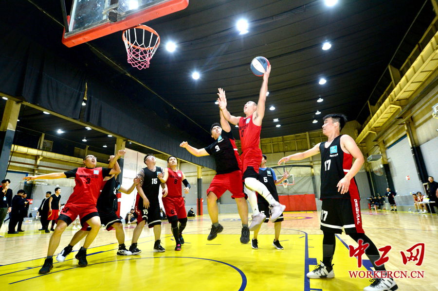 12月15日,一场职工篮球赛在天津市一家篮球馆内举行。来自河北、山东、天津等地的建筑工人利用周末时间举行篮球友谊赛,一边锻炼身体,一边增加交流。据了解,该活动由中建二局渤海分公司工会举办,旨在丰富职工的业余生活。工人日报—中工网记者 吴凡 摄