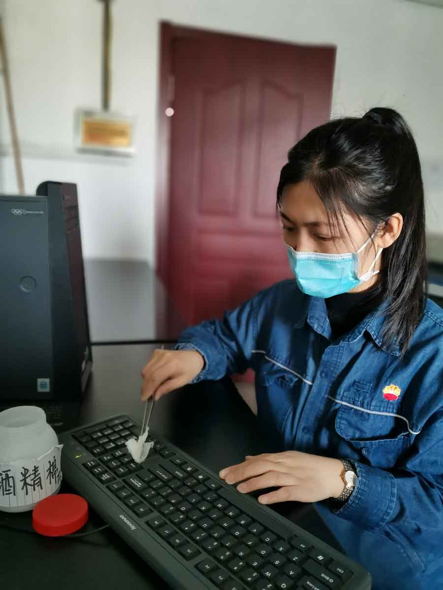 积极参与“战‘疫’有我”活动的同时,该厂女工更是积极用实际行动全力为“抗疫情、保生产”做贡献,锅炉车间女工每天细心为工友们测量体温,质监分析班女工自制75%的酒精棉进行岗位消毒……集控岗位女员工程辉说:“这场战疫让我们深深感受到祖国的强大,我为自己是一个中国人而感到骄傲和自豪,我相信,我们一定能战胜疫情,战胜未来的任何困难!”