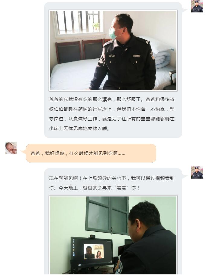 看着妻子怀里抱的小天使手舞足蹈,我不禁感慨万千:既有初为人父的喜悦,也有不能陪伴左右的遗憾,更多的是对小生命的怜爱,对妻子的愧疚和对家人付出的感激。