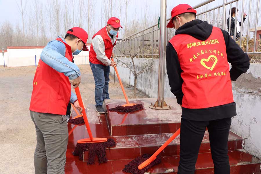 离开前,中建城项目书记徐汉付带领青年志愿者们对学校11间学生教室及3间教师办公室进行了消毒处理,并将每间教室的卫生打扫干净。随后又对学校国旗台、操场进行卫生清理。徐汉付书记表示:他非常关心学校复学后的疫情防范、每一位老师及孩子的安全问题,希望能代表公司尽一份力量,以实际行动来支援学校的疫情防控工作。