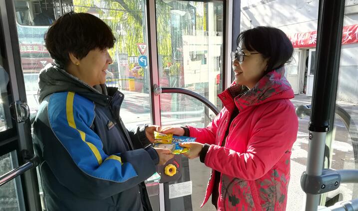 北京公交电车一队工会冬季为职工发放暖贴和姜糖