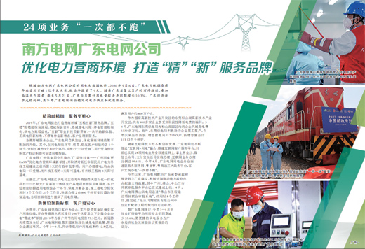 2019年,广东电网提出打造营商环境“五精五新”服务品牌,“五精”即精简报装流程、精减报装资料、精减接电时限、停电管理精细化、供电方案精益化,“五新”即业扩投资新界面、一次不跑新体验、工商电价新标准、不停电作业新常态、客户经理新服务。