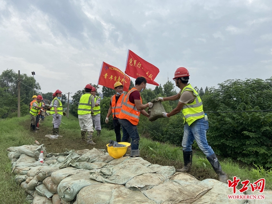 7月10日,中建科工华中大区接蔡甸区防汛指挥部紧急任务——赴消泗乡加固洪南村堤坝。早上6:30,人员集结出发,赶赴现场。公司副总经理、华中大区党委书记、董事长欧阳超,华中大区党委副书记、纪委书记、工会主席姚晓东现场指导,鼓舞士气。20名党员冲锋在前,现场铲土,装袋,当天累计运送约10000个沙袋。用一天的辛苦,筑牢保护人民群众生命财产的安全防线。