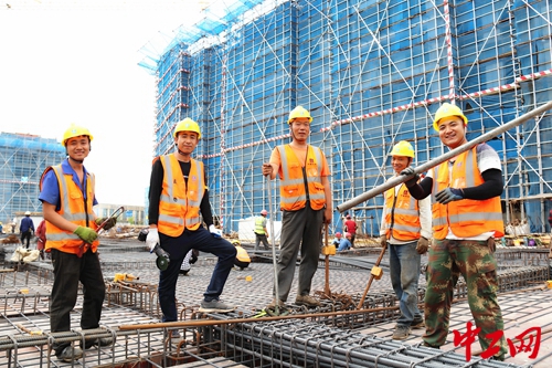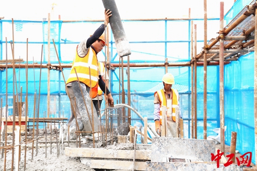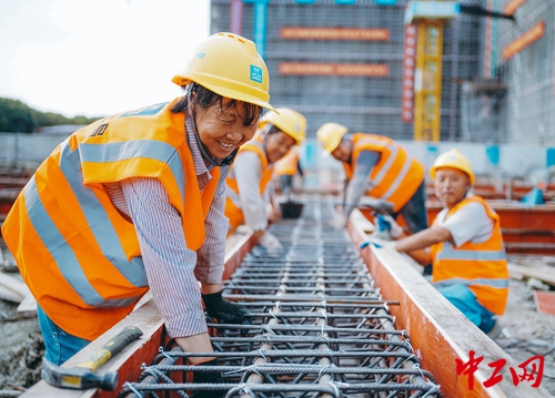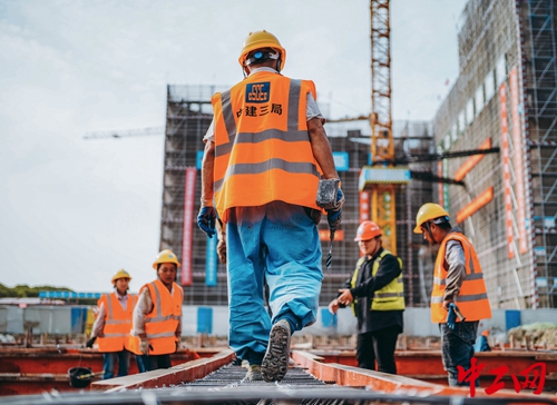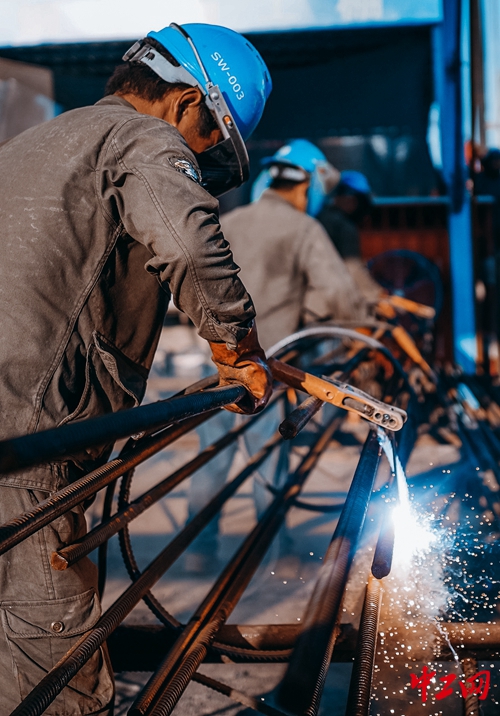 与此同时,在20公里外的中建三局苏州绿岸12项目现场,工友们仍在争分夺秒地工作,电焊、绑钢筋、支模板等作业井井有条。