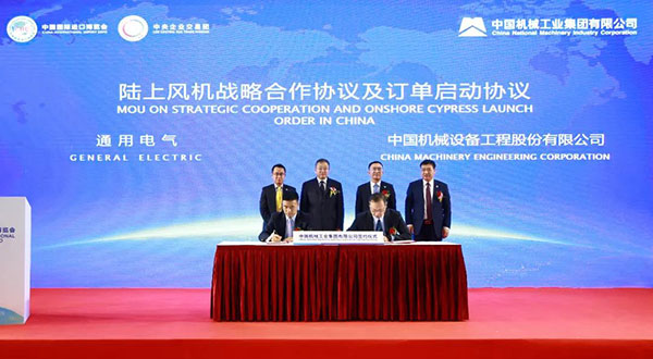 集团下属企业中国机械设备工程股份有限公司(以下简称CMEC)与美国通用电气签订陆上大机组风电合作战略协议及启动订单采购协议,双方计划在中国市场共同推广通用电气最新Cypress柏树系列陆上大风机。该项合作标志着我国陆上风电大兆瓦机组的商业化量产和运行步入5兆瓦级新时代,领跑全球大兆瓦风电市场,同时还为未来三北地区打造国际领先风电基地提供了样板。