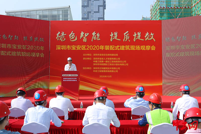 10月30日,深圳市宝安区装配式建筑现场观摩活动“绿色智能、提质提效”在中建三局一公司深圳分公司承建的宝安39区海乐花园棚户区改造项目举办。