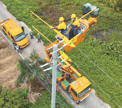 南方电网广东广州供电局保持稳定的投资规模,继续推进电网建设,持续优化电力营商环境。今年,广州815项配网度夏工程高效投产,同比增加46%;新建10千伏线路360千米,配变897台,增加约66万千瓦供电能力,约等于新增满足一个荔湾区的用电需求。图为广东广州番禺供电局工作人员在高温天气下开展现场作业,保障电网安全运行。