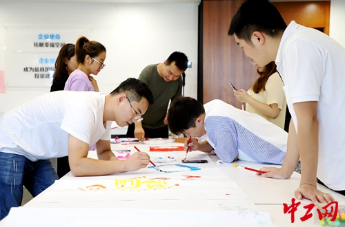 员工们打趣地说:“今天没有谁是单身,我们都和祖国有个约会。”在洁白的纸面上,大家亲手用画笔记录着自己对祖国记忆里的点点滴滴,有鲜艳的五星红旗、有中建人征战火神山和雷神山的情景、有不惧艰险抗洪救灾等等。员工张自强说:“今年中国经历了太多风雨,江河行地,日月经天,无论何时,祖国永远都是那个我深爱着的地方。”(林瑞祥)