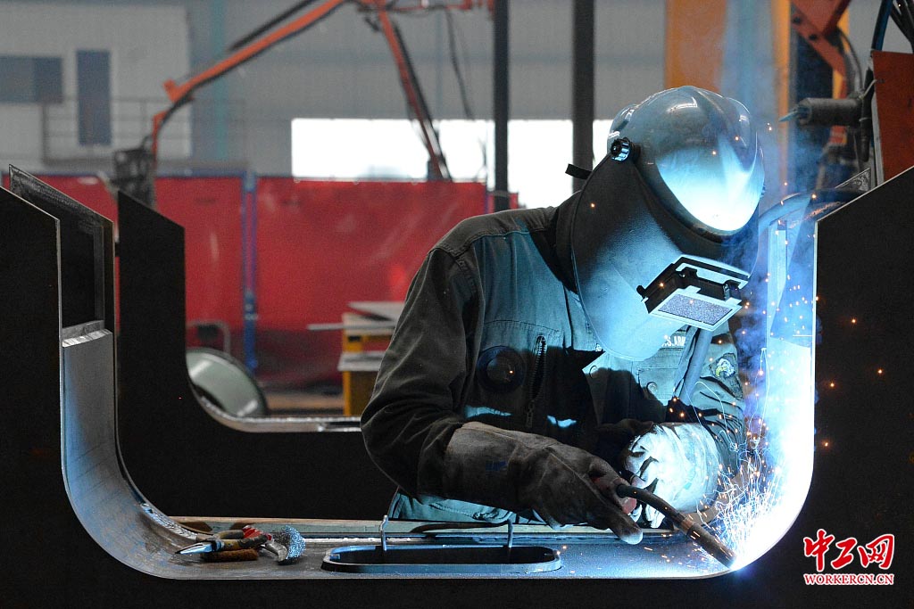 江苏泰州:工人赶制矿车部件热火朝天