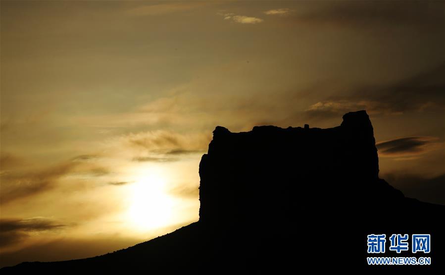 这是夕阳中的阳关烽燧遗址(4月3日摄)。